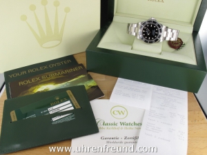 Rolex Submariner Ref. 14060M aus 2009 mit Verkaufsdatum 08.10.2009. Das Gehäuse und Band befinden sich in sehr gutem Zustand und weisen keine Gebrauchsspuren auf. Die Uhr kann als neuwertig bezeichnet werden. Das Uhrwerk ist überholt, kontrolliert und läuft einwandfrei. Die Lieferung erfolgt mit Box Umkarton Originalzertifikat Anleitungen und Rechnung von Classic Watches sowie CW Garantie Zertifikat.