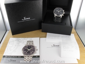 Sinn Fliegerchrono 358.010 aus 2015 mit schwarzem Zifferblatt. Die Uhr ist getragen aber absolut neuwertig! Das Werk wurde kontrolliert und läuft einwandfrei. Zum Lieferumfang gehören die original Garantiekarte, Bedienungsanleitungen und Box sowie Rechung von Classic Watches.